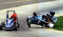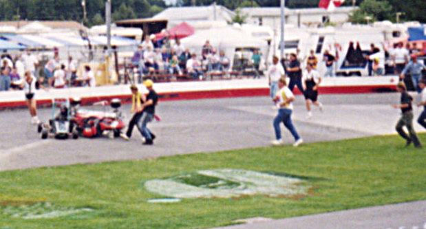 A bad picture of me in a wreck. All of the corner workers are coming to my aid!