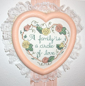 A little cross-stitched gift that she made for our family.