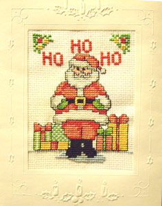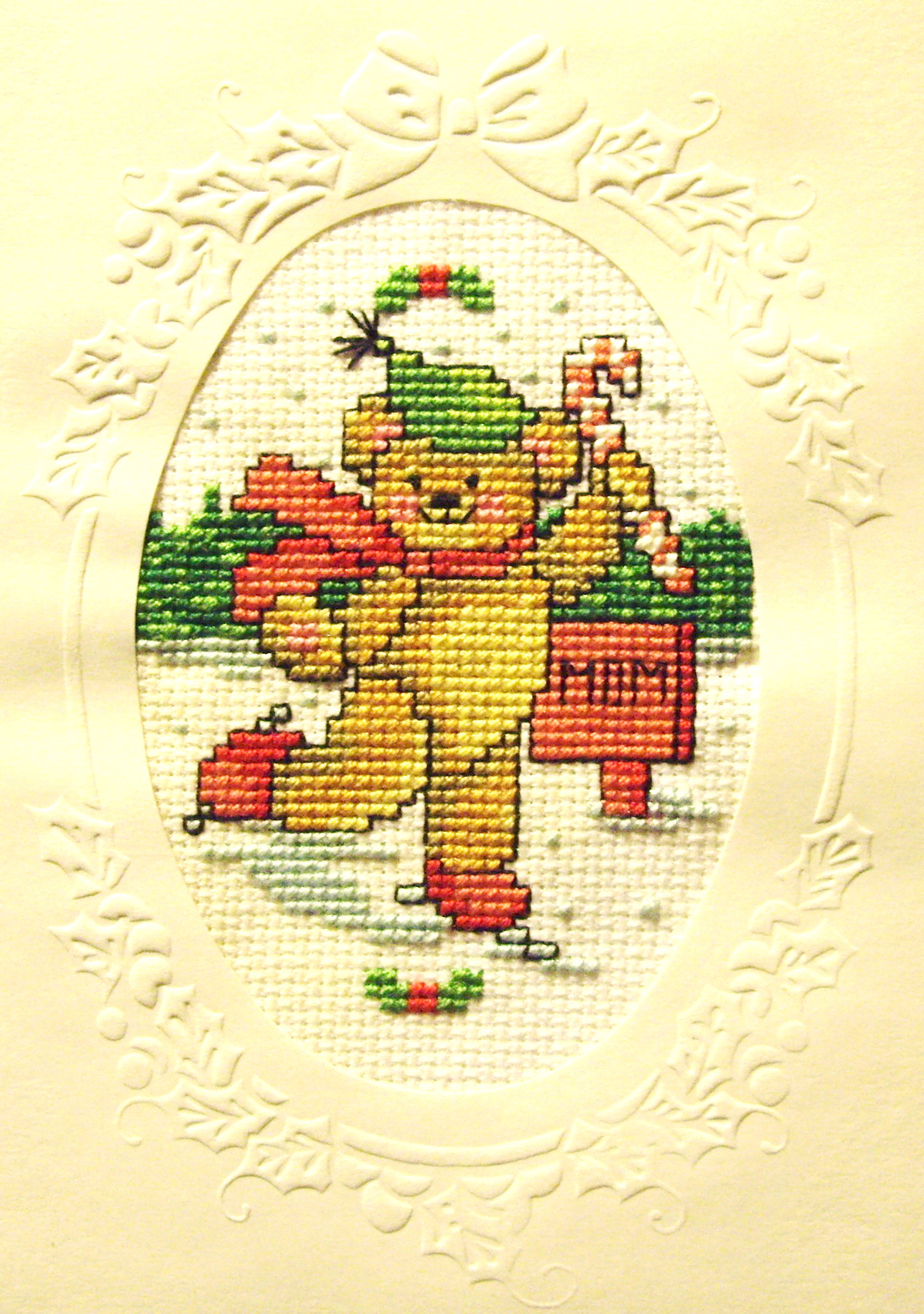 A cross-stitched card she made for her Brother Michael, Christmas 1995.